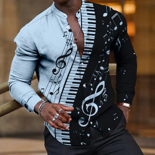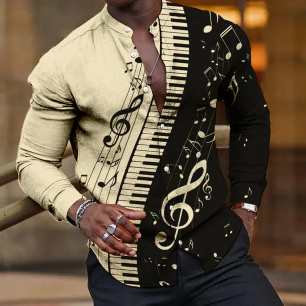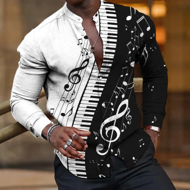 Get ready to rock with our exclusive Men’s Linen Shirt boasting unique Pano Keys graphic prints-a work of collab with our Streetwear buddies! The stylish stand collar shirt is crafted from a soft Polyester-Linen blend suitable for all seasons