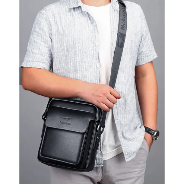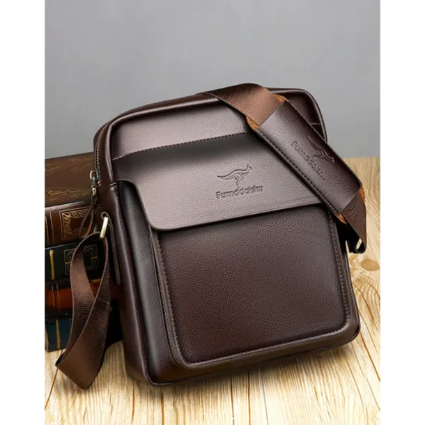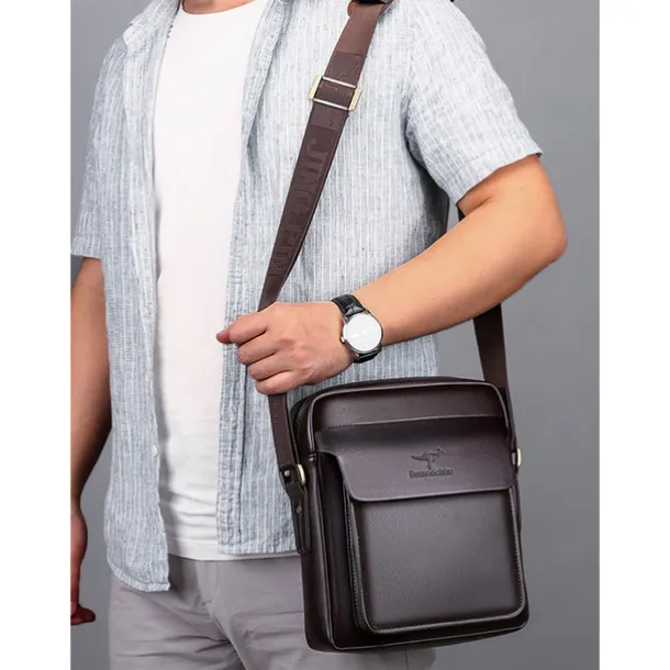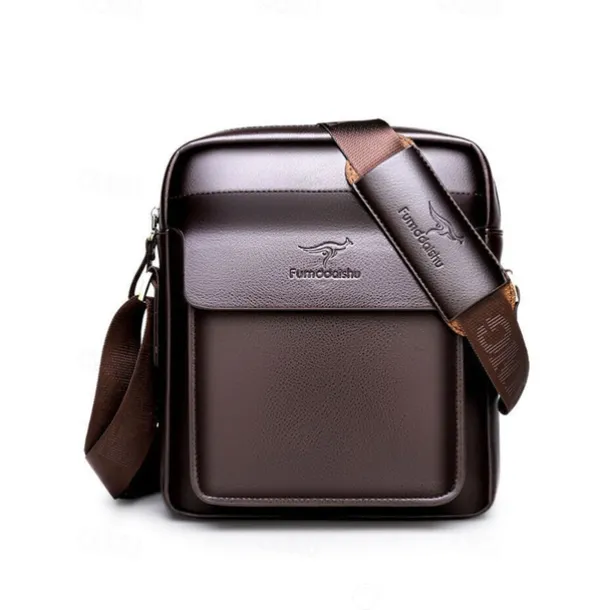 Men’s Brown Black Faux Leather Crossbody Bag with Adjustable Shoulder Strap – Stylish and Practical Shoulder Bag, Messenger Bag for Work, Travel and Daily Use