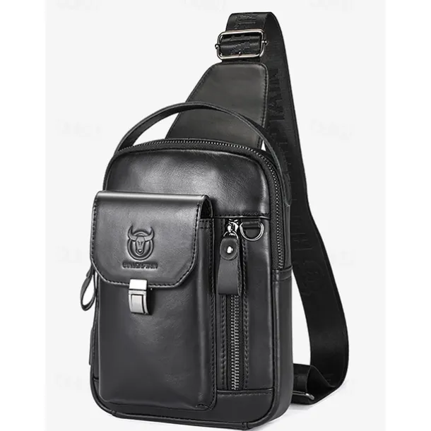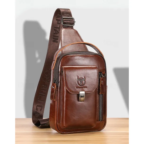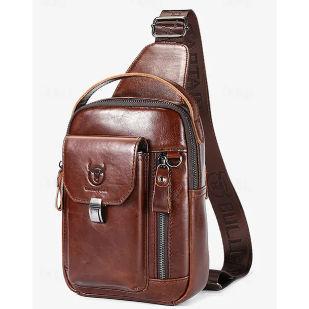 Men’s Brown Leather Crossbody Sling Bag with Multiple Compartments and Adjustable Strap, Ideal for Travel and Daily Use