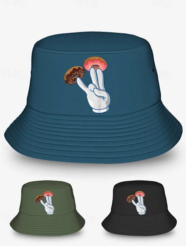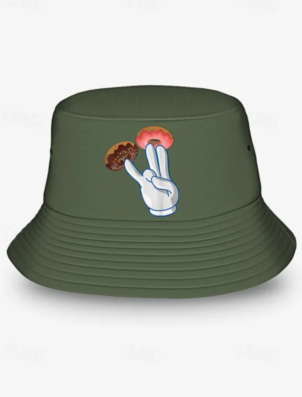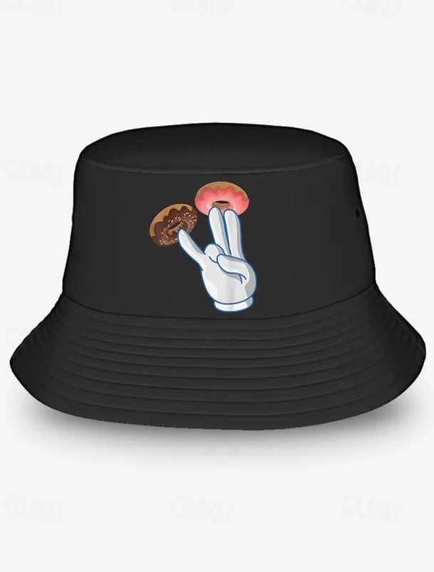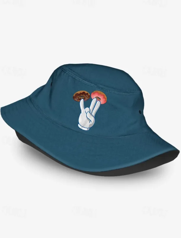 Men’s Bucket Hat with Donut Peace Sign Graphic – Trendy Casual Sun Hat for Summer Outfits and Streetwear