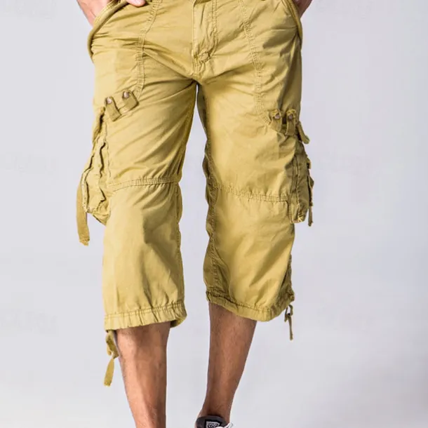 Men’s Capri Cargo Shorts Cargo Shorts Capri Pants Shorts Summer Shorts Multi Pocket Flap Pocket Plain Comfort Wearable Knee Length Outdoor Sport Daily Fashion Casual Army Green Red