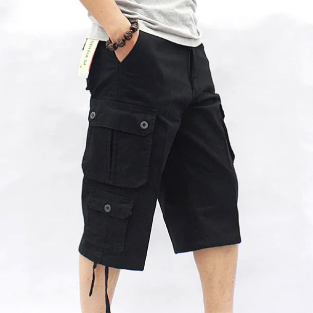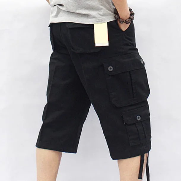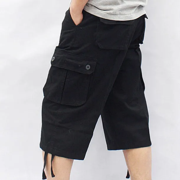 Men’s Capri Cargo Shorts Leg Drawstring Multi Pocket Plain Calf-Length Streetwear Classic Style Black Army Green
