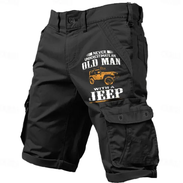 Men’s Cargo Shorts Multiple Pockets Old Man Letter Printed Outdoor Short Sports Outdoor Classic Micro-elastic Shorts