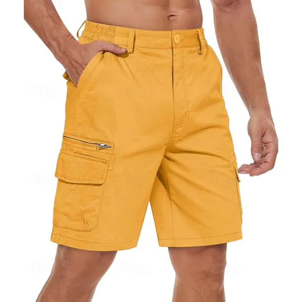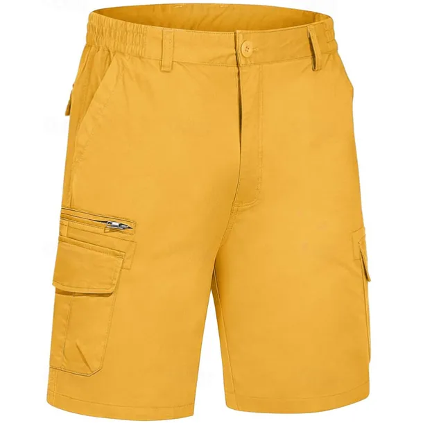 Men’s Cargo Shorts Shorts Summer Shorts Elastic Waist Multi Pocket Flap Pocket Plain Comfort Wearable Knee Length Outdoor Sport Daily Fashion Casual Black Yellow