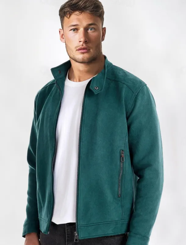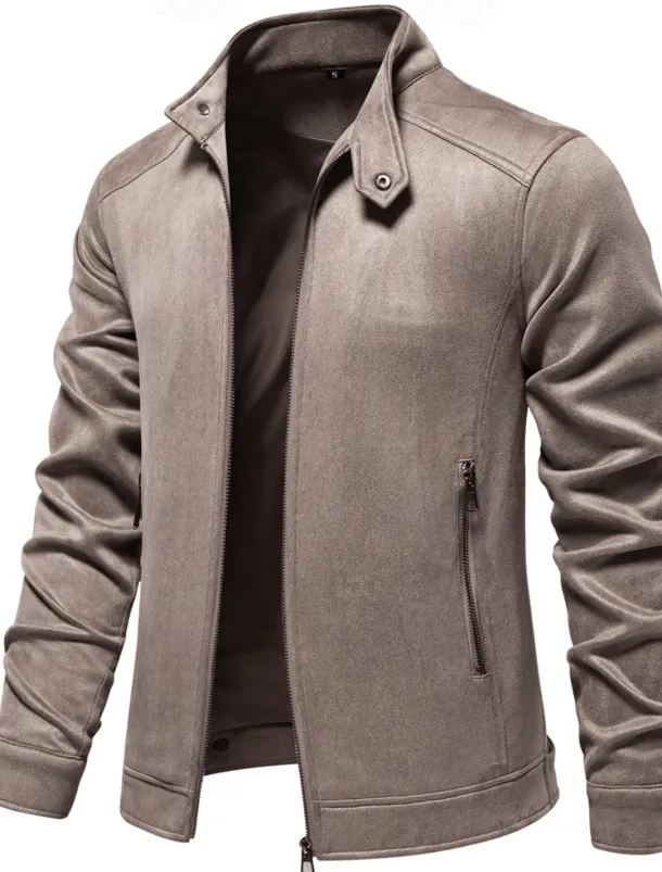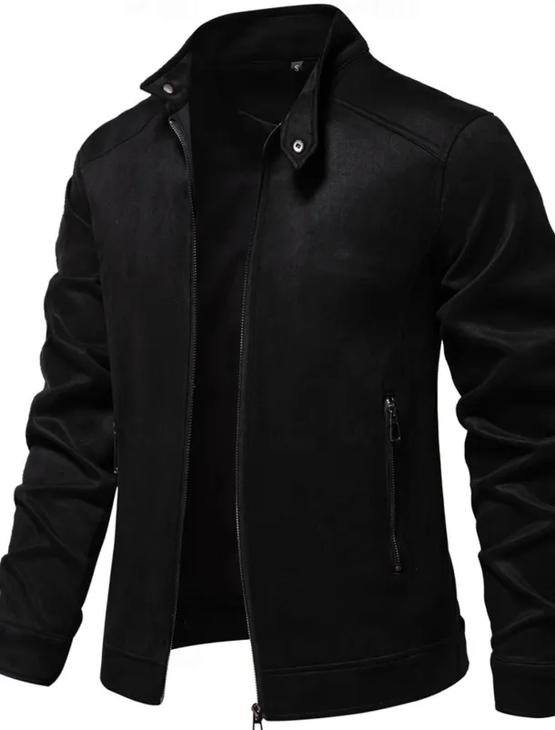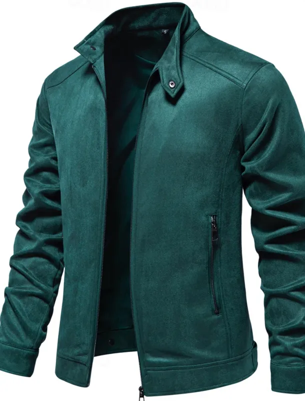 Men’s Casual Jacket Suede Jacket Casual Daily Windbreaker Sexy Fall & Winter Solid / Plain Color Casual Collarless Regular Black Yellow Green Gray Jacket