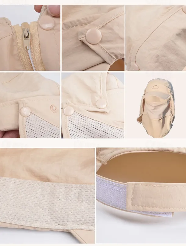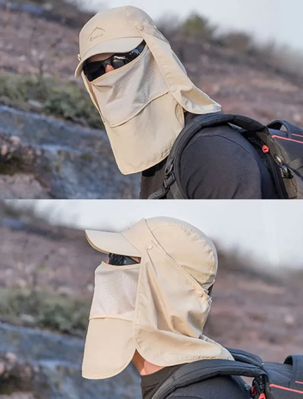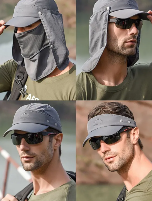 Men’s Convertible Sun Hat with Neck Flap and Detachable Face Cover, UV Protection Lightweight Cap for Outdoor Hiking, Fishing, and Camping