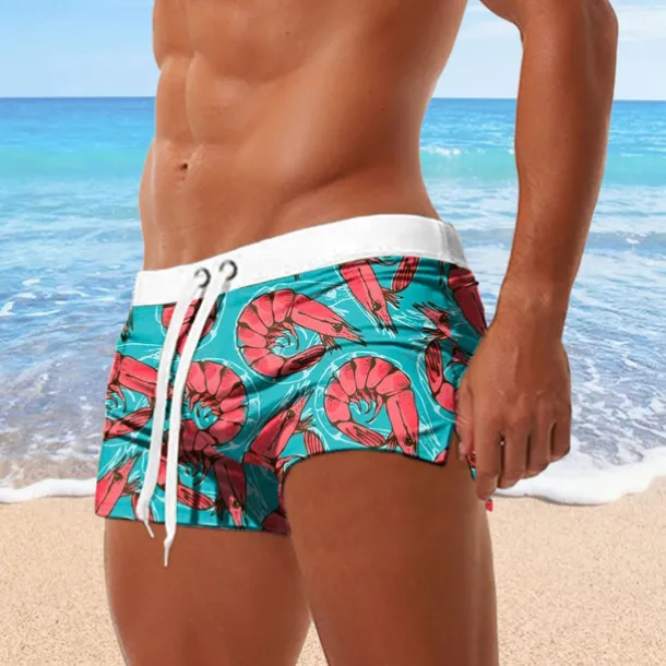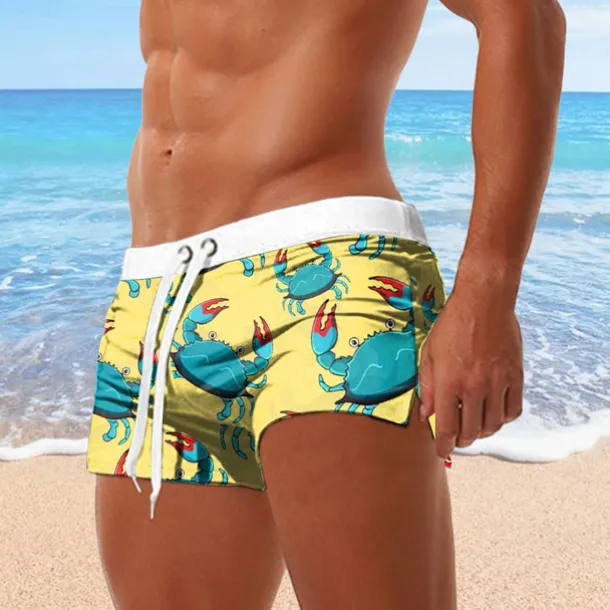 Men’s Crab Shrimp Swim Trunks Swim Shorts Board Shorts Mid Waist 3D Print Hawaiian Surfing Holiday Beach Drawstring with Mesh lining Elastic Waist Designer Clothing Apparel