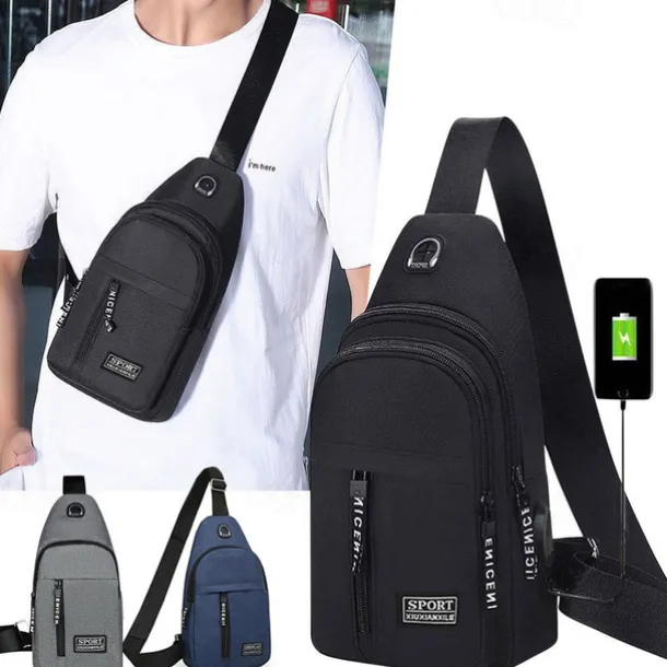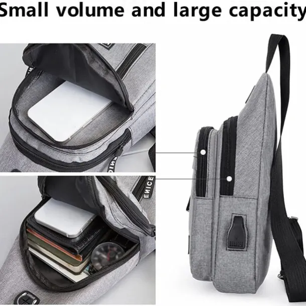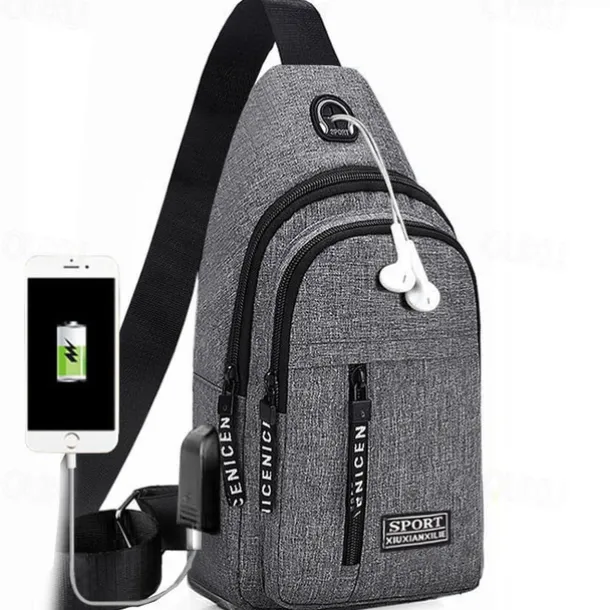 Men’s Crossbody Sling Bag with USB Charging Port – Large Capacity, Multi-Pocket Back to School Shoulder Bag