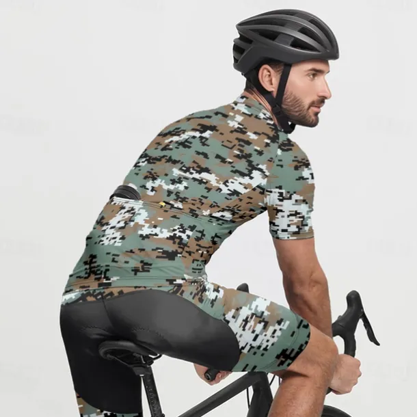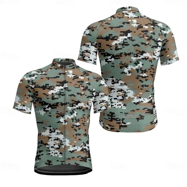 Men’s Cycling Jersey Camo / Camouflage Short Sleeve Bike Tee Tshirt Jersey with 3 Rear Pockets Mountain Bike MTB Quick Dry Anatomic Design Wicking Breathable Sports Army Green Blue Green Clothing