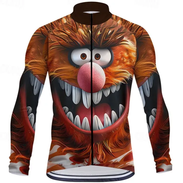 Men’s Cycling Jersey Cartoon Long Sleeve Bike Tee Tshirt Top with 3 Rear Pockets Mountain Bike MTB Road Bike Cycling Quick Dry Front Zipper Wicking Sports Orange Khaki Clothing Apparel