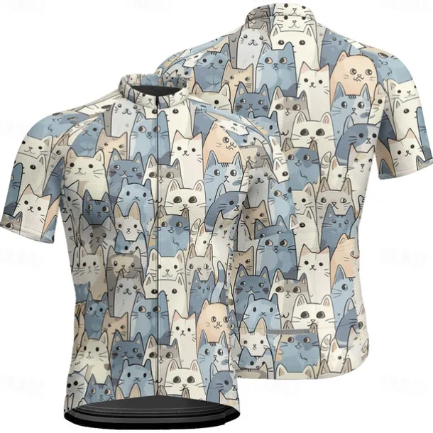 Men’s Cycling Jersey Cat Short Sleeve Bike Tee Tshirt Jersey with 3 Rear Pockets Mountain Bike MTB Quick Dry Anatomic Design Wicking Breathable Sports Navy Blue Royal Blue Blue Clothing Apparel