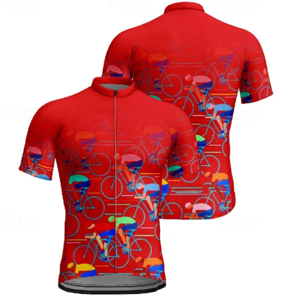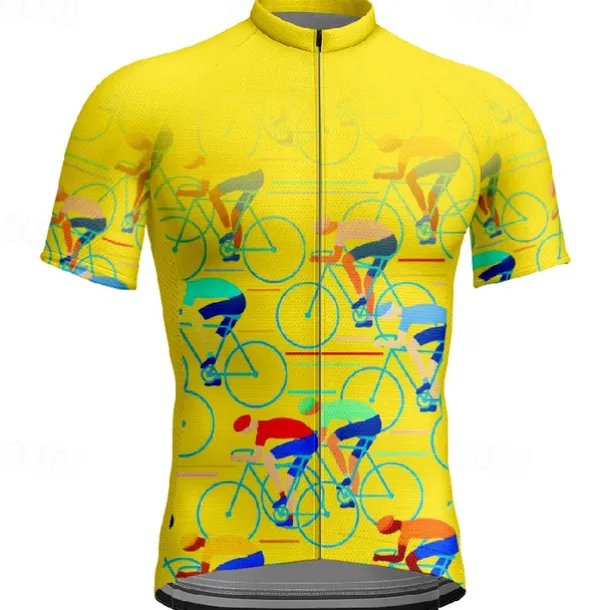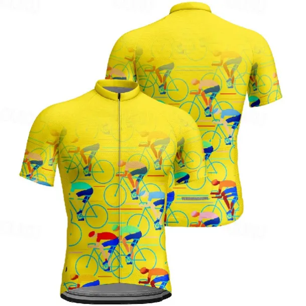 Men’s Cycling Jersey Graphic Short Sleeve Bike Tee Tshirt Jersey with 3 Rear Pockets Mountain Bike MTB Quick Dry Anatomic Design Wicking Breathable Sports Black Yellow Red Clothing Apparel