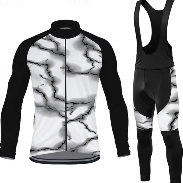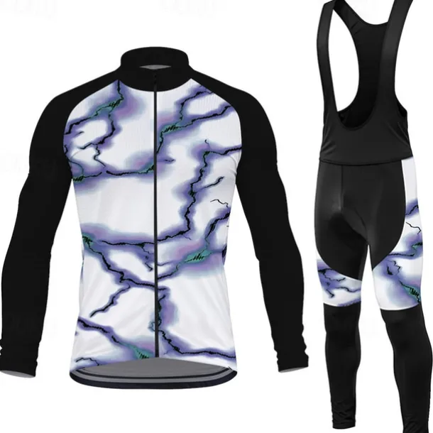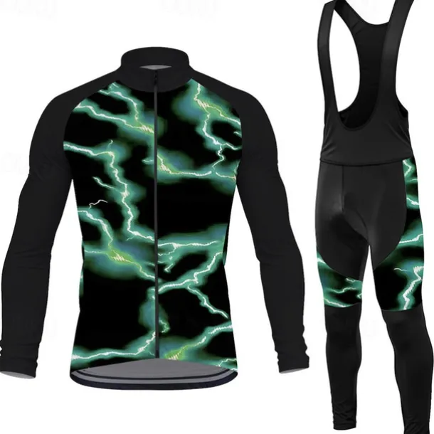 Men’s Cycling Jersey with Bib Tights Lightning Long Sleeve Bike Bib Tights Top Clothing Suit with 3 Rear Pockets Mountain Bike MTB Road Bike Cycling Sweat wicking Comfortable Breathable Sports Red