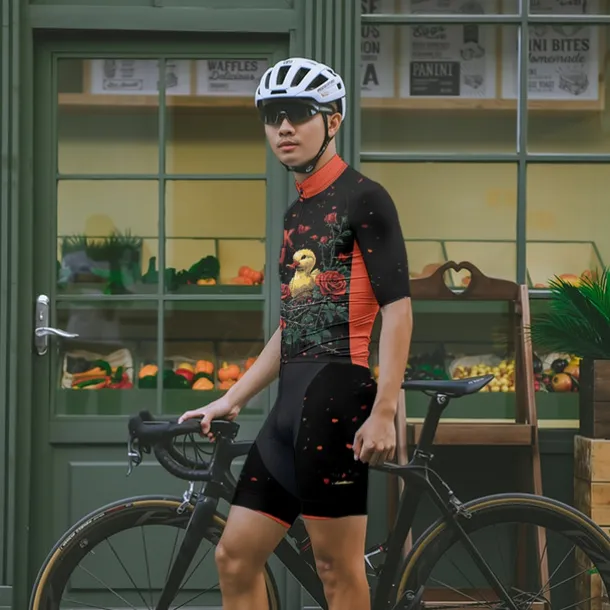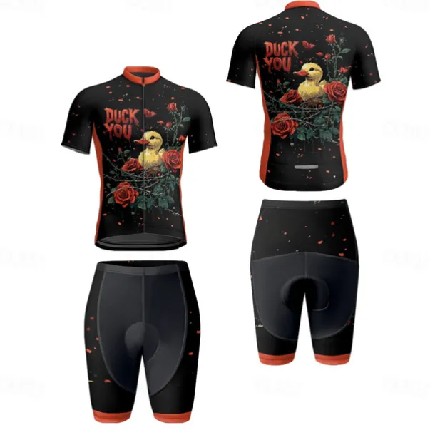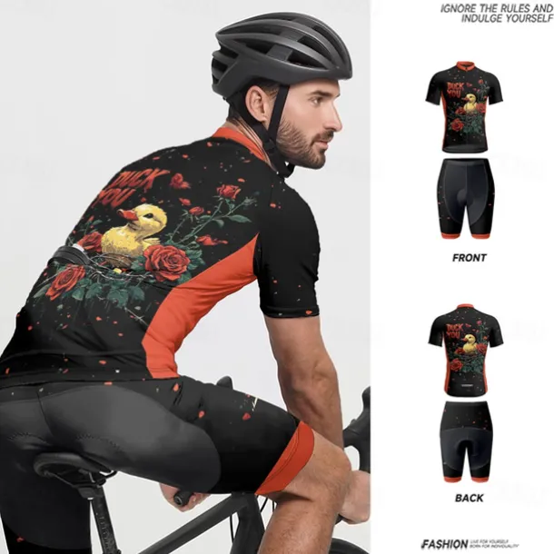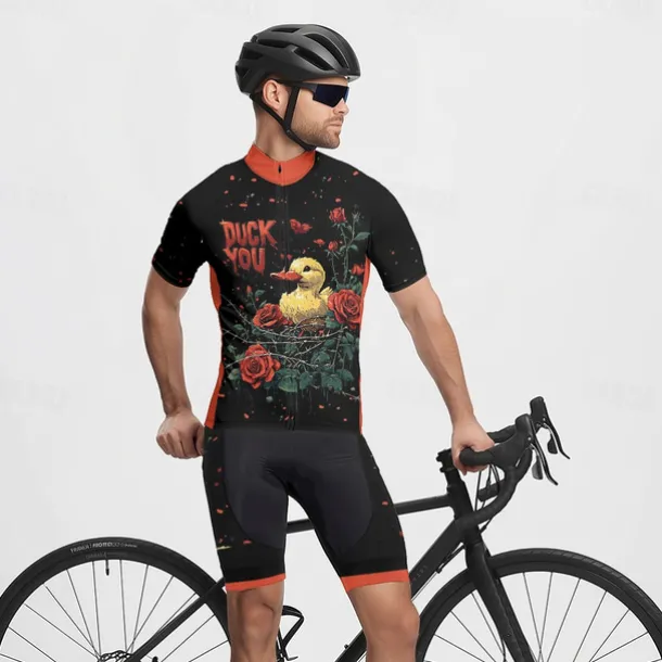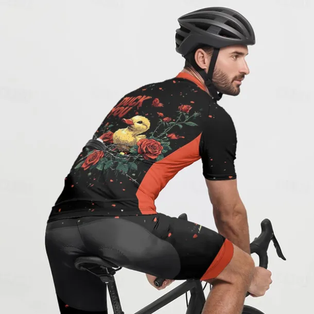 Men’s Cycling Jersey with Shorts Cartoon Floral Botanical Short Sleeve Bike Clothing Suit with 3 Rear Pockets Mountain Bike MTB Road Bike Cycling Front Zipper Sweat wicking Comfortable Breathable