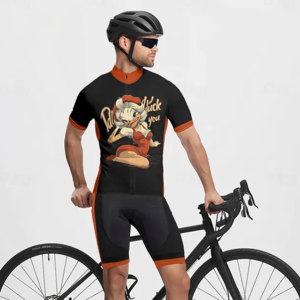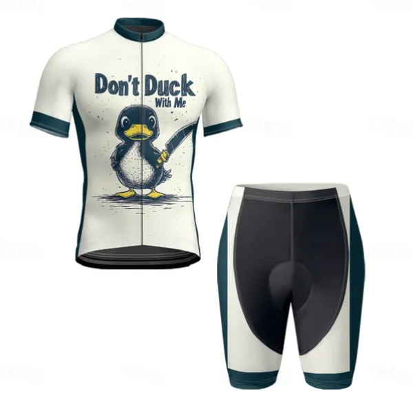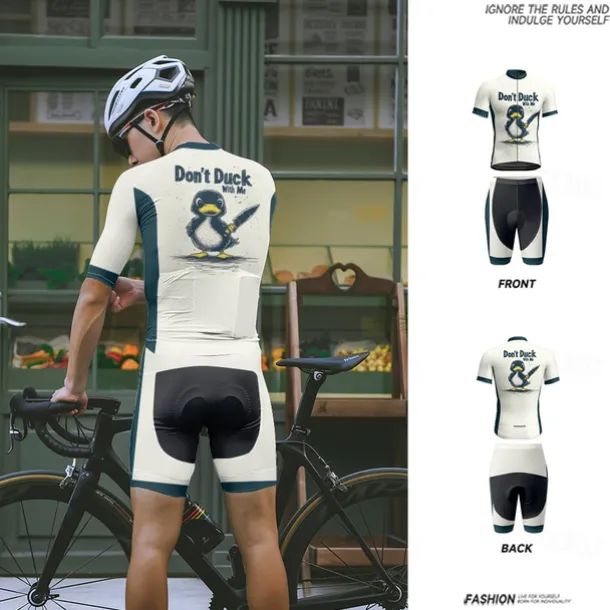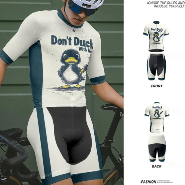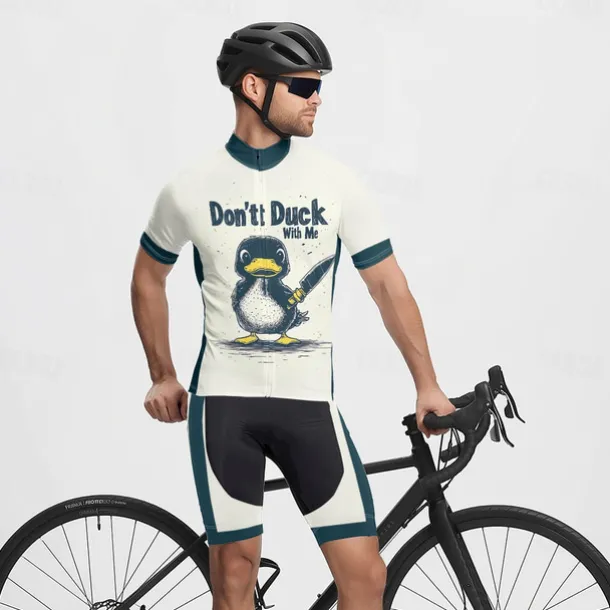 Men’s Cycling Jersey with Shorts Cartoon Short Sleeve Bike Clothing Suit with 3 Rear Pockets Mountain Bike MTB Road Bike Cycling Front Zipper Sweat wicking Comfortable Breathable Sports Black White