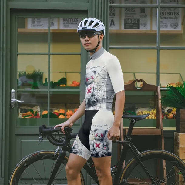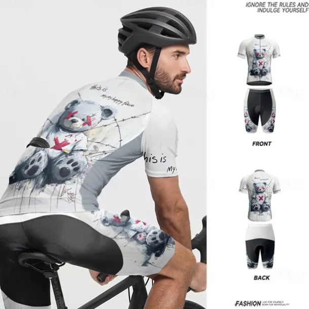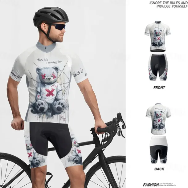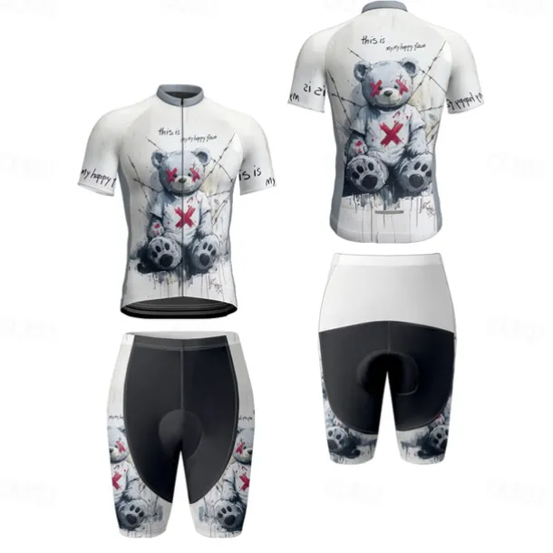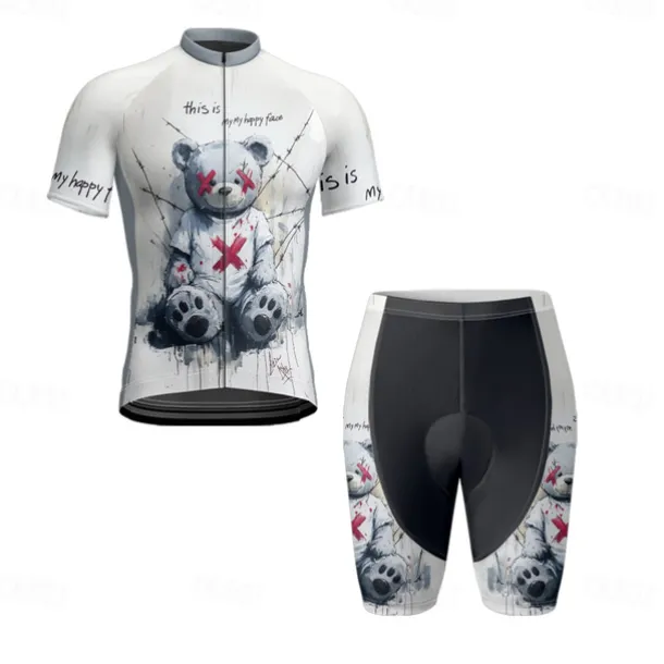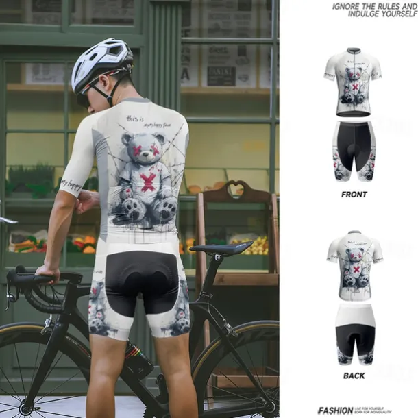 Men’s Cycling Jersey with Shorts Cartoon Short Sleeve Bike Clothing Suit with 3 Rear Pockets Mountain Bike MTB Road Bike Cycling Front Zipper Sweat wicking Comfortable Breathable Sports White