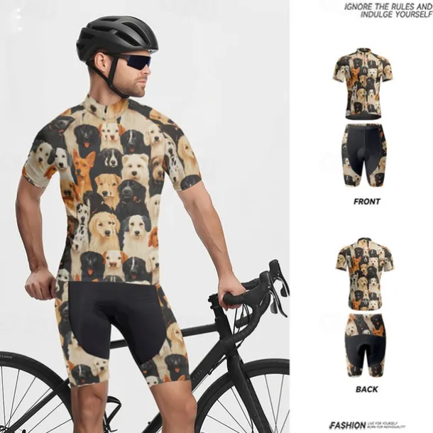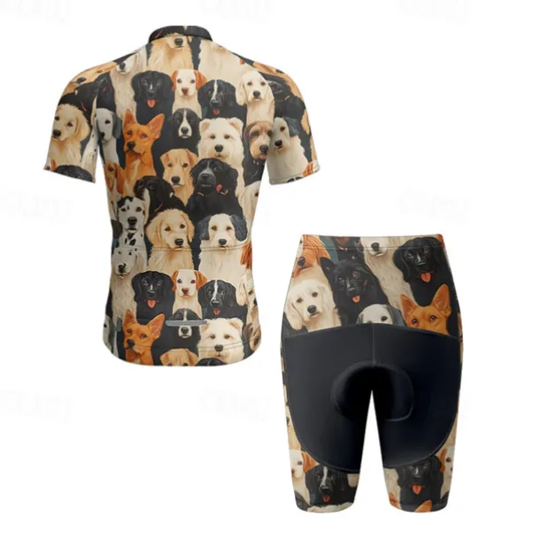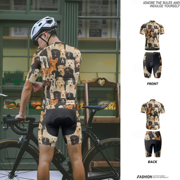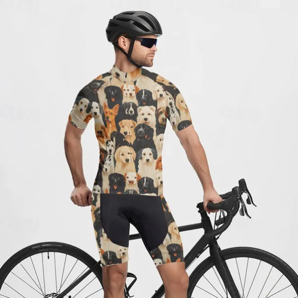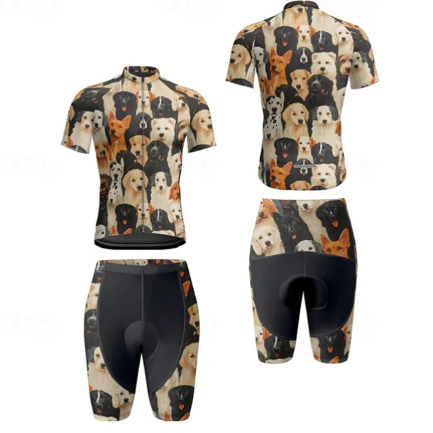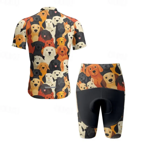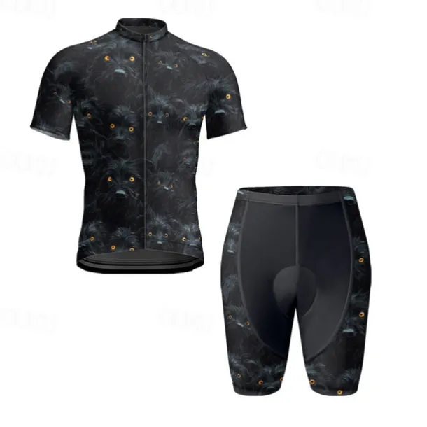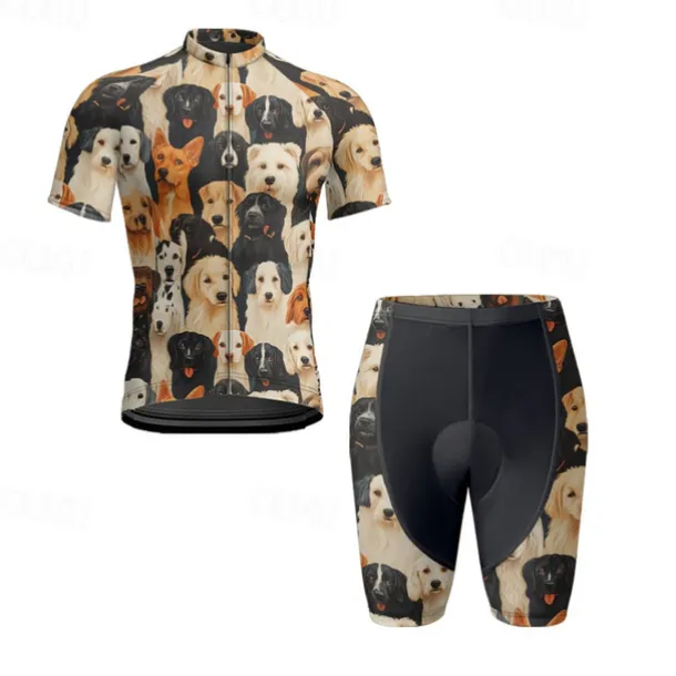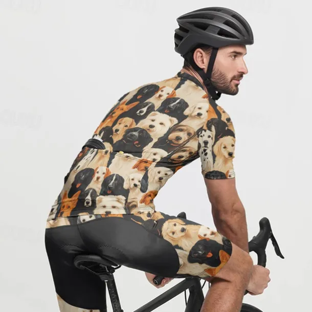 Men’s Cycling Jersey with Shorts Dog Short Sleeve Bike Clothing Suit with 3 Rear Pockets Mountain Bike MTB Road Bike Cycling Front Zipper Sweat wicking Comfortable Breathable Sports Black Yellow Dark