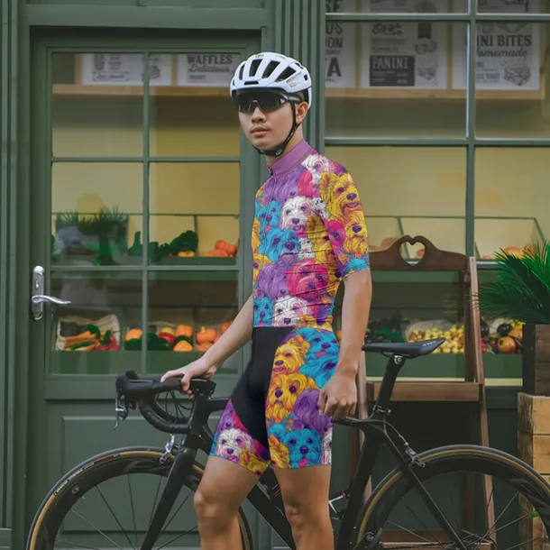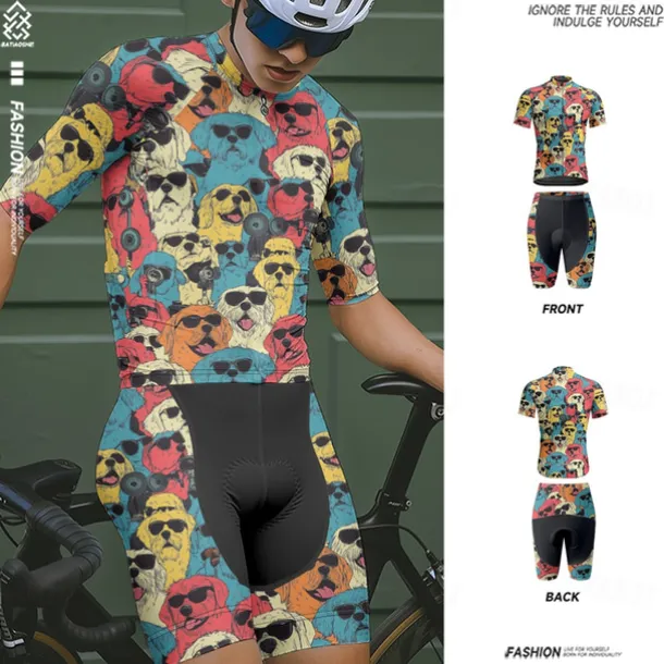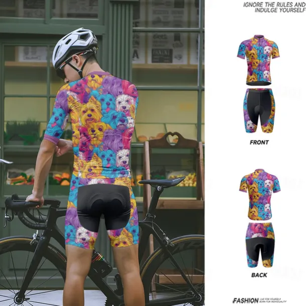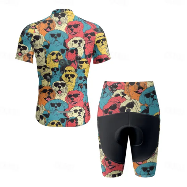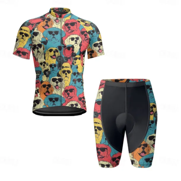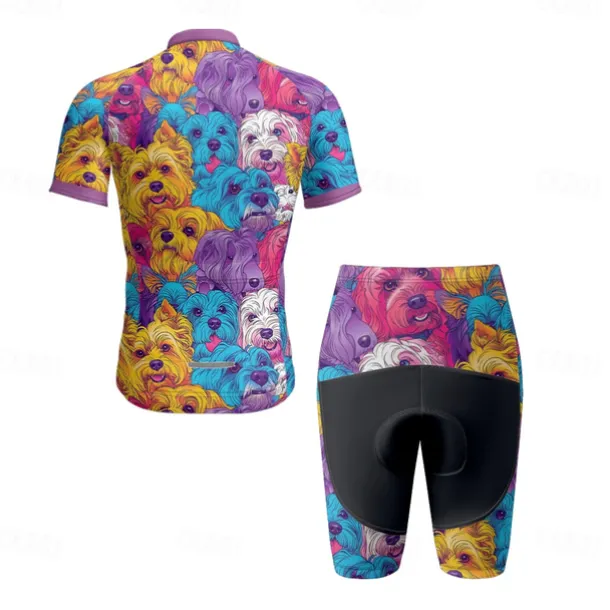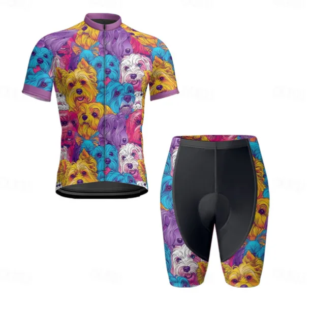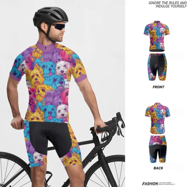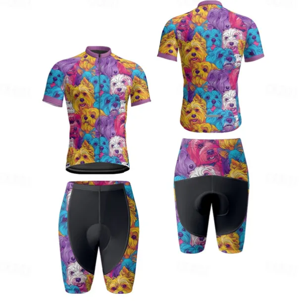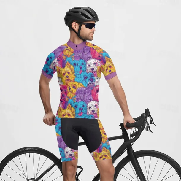 Men’s Cycling Jersey with Shorts Dog Short Sleeve Bike Clothing Suit with 3 Rear Pockets Mountain Bike MTB Road Bike Cycling Front Zipper Sweat wicking Comfortable Breathable Sports Blue Purple