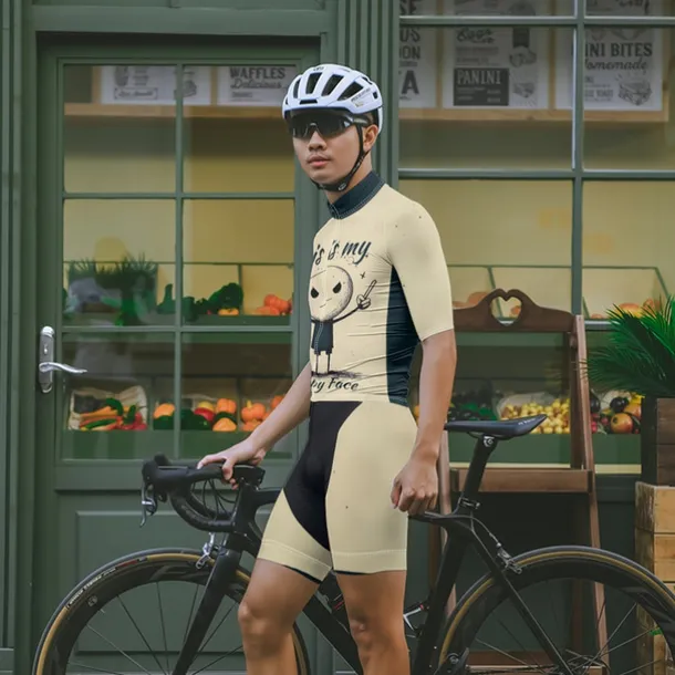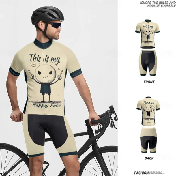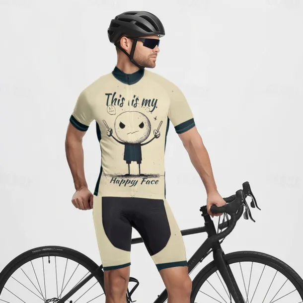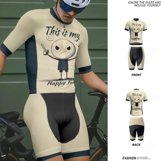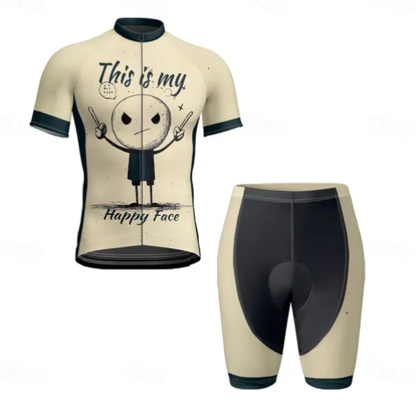 Men’s Cycling Jersey with Shorts Graffiti Short Sleeve Bike Clothing Suit with 3 Rear Pockets Mountain Bike MTB Road Bike Cycling Front Zipper Sweat wicking Comfortable Breathable Sports Khaki