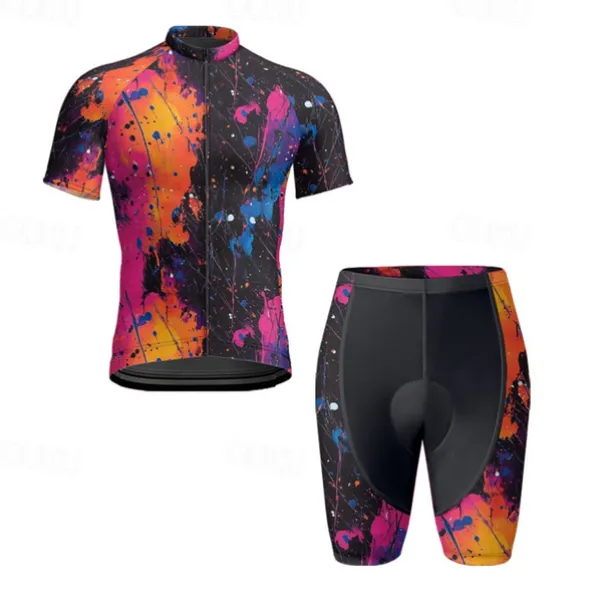 Men’s Cycling Jersey with Shorts Graffiti Short Sleeve Bike Clothing Suit with 3 Rear Pockets Mountain Bike MTB Road Bike Cycling Front Zipper Sweat wicking Comfortable Breathable Sports Yellow Red