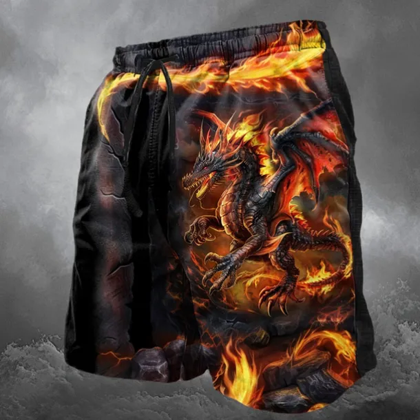 Men’s Dragon Skeleton Sweat Pants Swim Shorts Board Shorts Mid Waist Vintage Designer Punk & Gothic Casual Holiday Club Designer Clothing Apparel