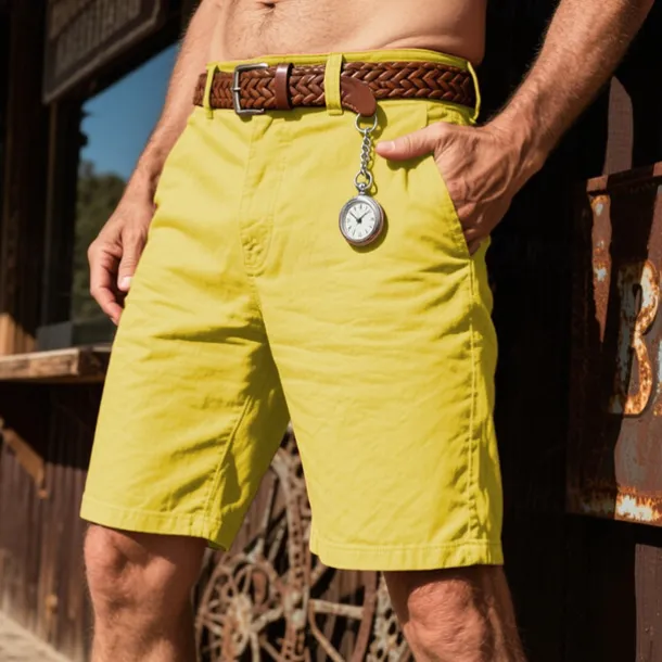 Men’s Dress Shorts Burmuda Shorts Work Shorts Pocket Plain Comfort Breathable Knee Length Outdoor Business Fashion Casual Yellow Light Green
