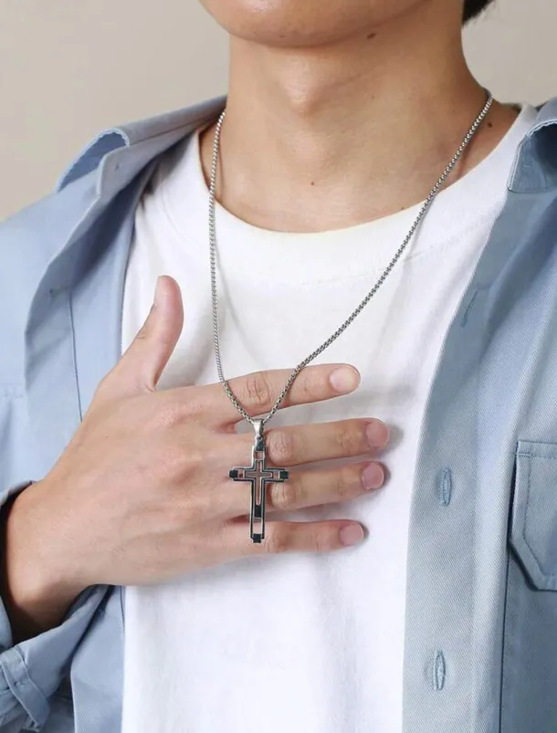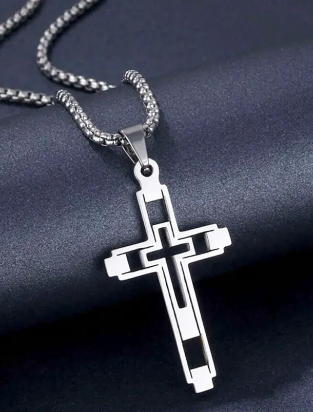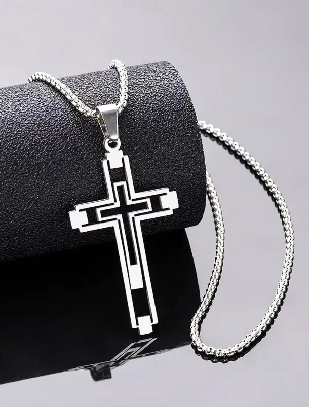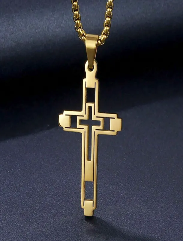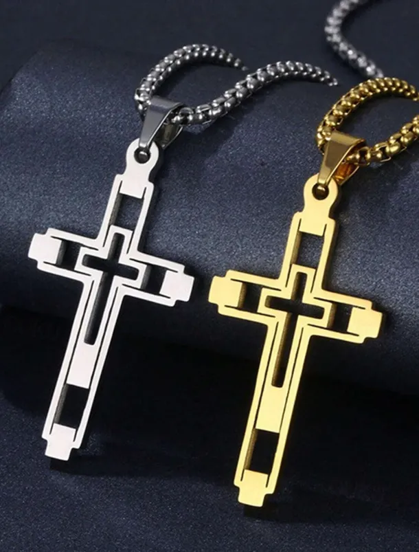 Men’s Dual-Tone Stainless Steel Cross Pendant Necklace – Silver and Gold Finish, Modern Religious Jewelry