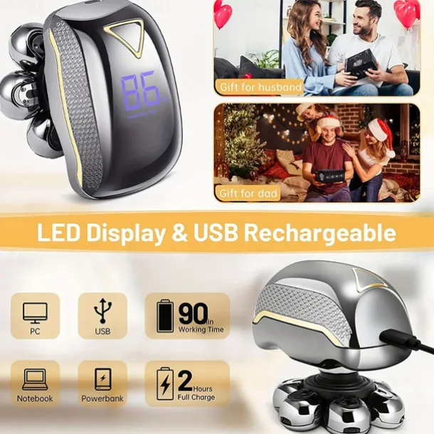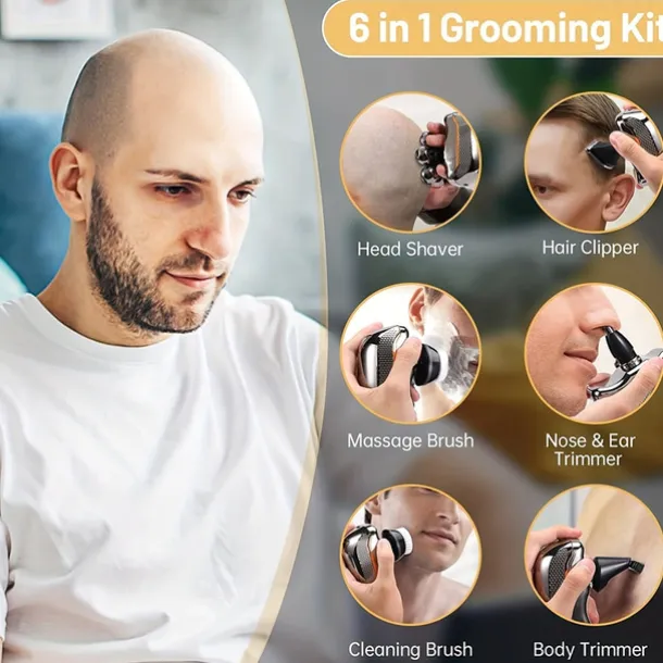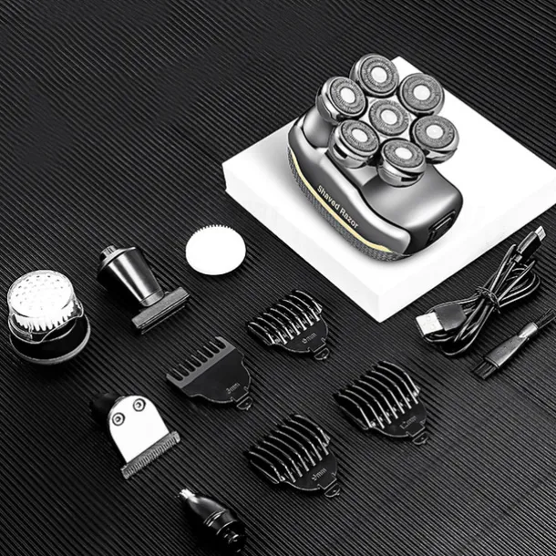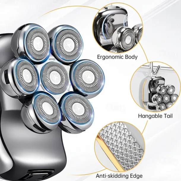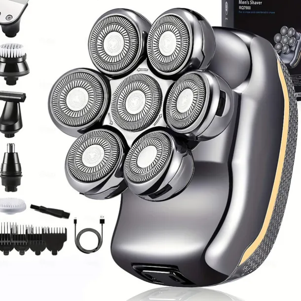 Men’s Electric Head Shaver Razor – Rechargeable Cordless Hair Shaving Razors For Bald Man 6 In 1 Waterproof Wet Dry Beard Trimmer Body Hair Cutting Clipper Grooming Kit 7 Rotary Heads