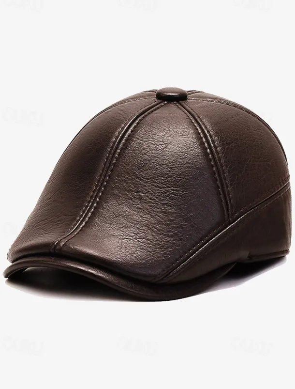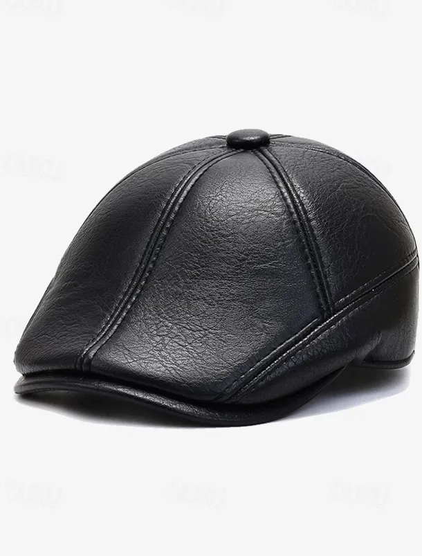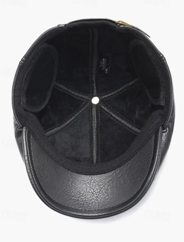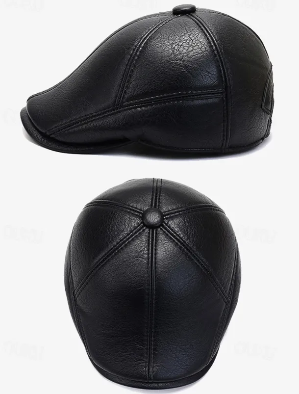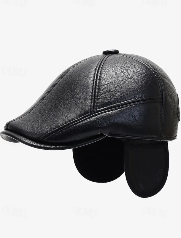 Men’s Faux Leather Beret with Ear Flaps – Stylish Winter Hat with Ear Protection for Casual Wear and Outdoor Activities