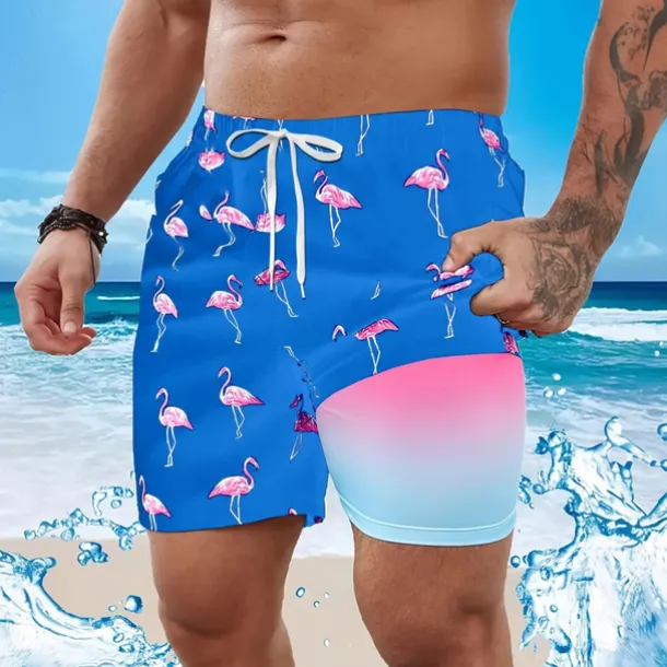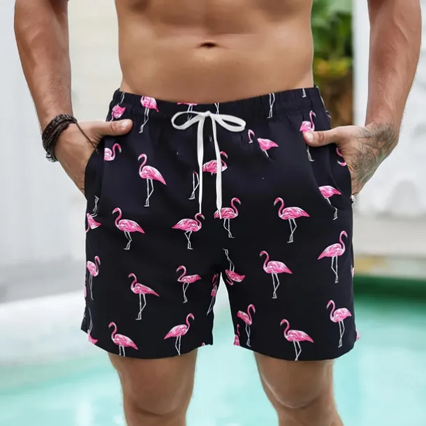 Men’s Flamingo Bird Lined Shorts Swim Shorts Board Shorts Mid Waist Hawaiian Vacation Holiday Beach Wear Side Pockets With Compression Liner Elastic Drawstring Waist Designer Clothing Apparel