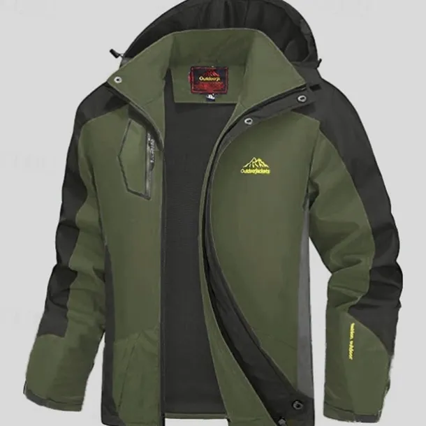 Men’s Fleece Jacket Rain Jacket Raincoat Outdoor Waterproof Windproof Hiking Outfits Hiking Clothes Winter Autumn / Fall Windbreaker Patchwork Black Army Green Red