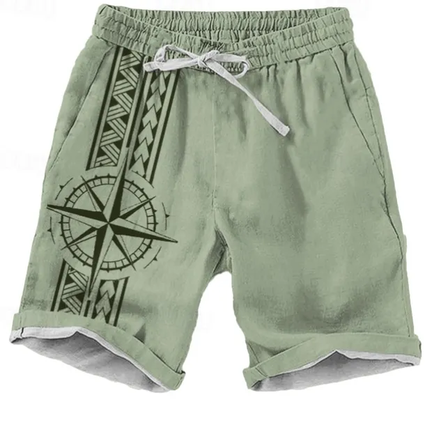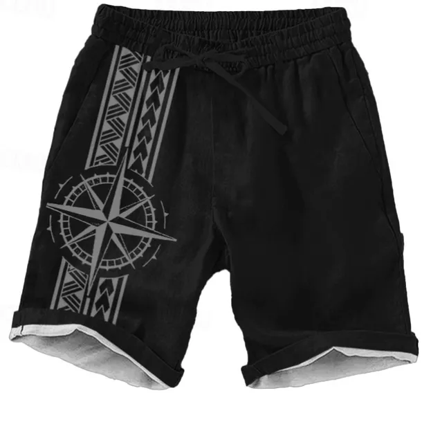 Men’s Geometric Pattern Nautical Compass Shorts Beach Shorts Casual Shorts Mid Waist Vacation Streetwear Hawaiian Outdoor Casual Holiday Drawstring Side Pockets Designer Clothing Apparel