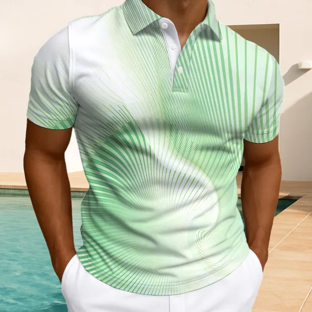 Men’s Geometric Polo Short Sleeve Polo Shirts Collared Shirts Business Casual Outdoor Athleisure Daily Wear Buttons Summer Lake blue Blue Purple