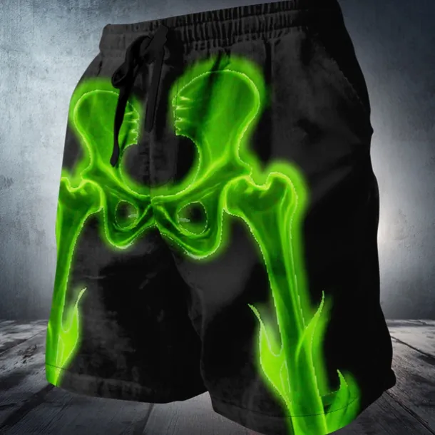 Men’s Glow in the Dark Bone Skeleton Sweat Shorts Beach Shorts Terry Shorts Mid Waist Dark Punk Gothic Style Holiday 3D Print with Side Pocket Elastic Drawstring Waist Designer Clothing Apparel