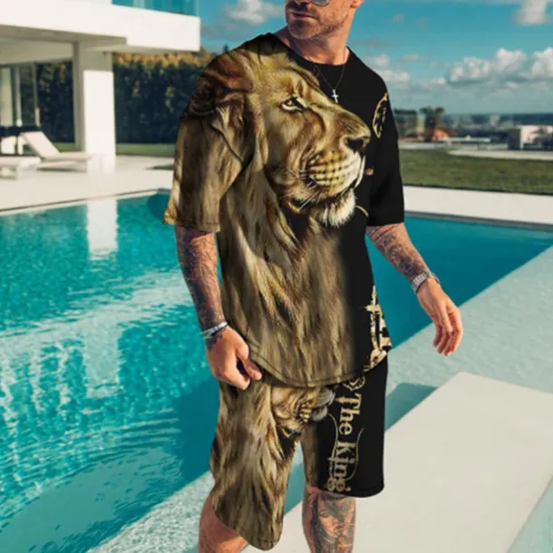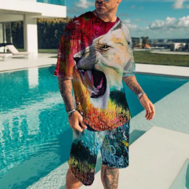 Men’s Graphic Animal 2pcs Tees sets Matching Sets Short Sleeve Short Pants Crew Neck Fashion Lightweight Basic Street Daily Sports Print Summer Spring Orange Brown Green