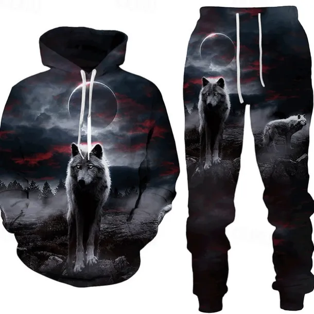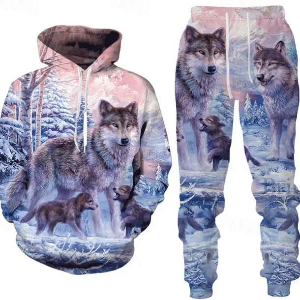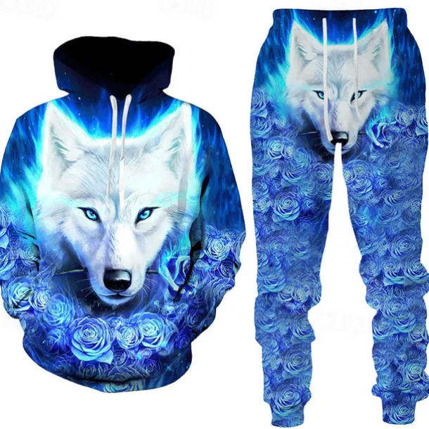 Men’s Graphic Animal Wolf 2pcs 3D Sweatshirt Sets Tracksuit Hoodies Long Sleeve Long pants Hooded Streetwear Designer Basic Sports & Outdoor Casual Sports Print Spring Fall Black White Blue
