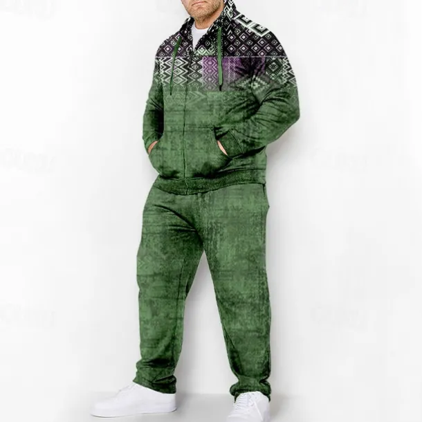 Men’s Graphic Bohemian 2pcs 3D Sweatshirt Sets Tracksuit Zip Up Hoodies Long Sleeve Long pants Hooded Fashion Designer Casual Daily Sports Going out 3D Print Spring & Fall Blue Green Coffee