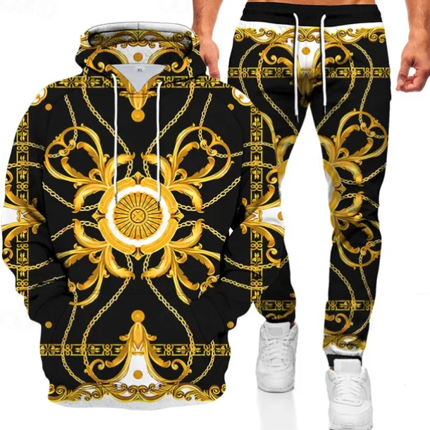 Men’s Graphic Chains Print 2pcs 3D Sweatshirt Sets Tracksuit Hoodies Long Sleeve Long pants Hooded Streetwear Sportswear Basic Sports & Outdoor Casual Sports Print Spring Fall Black White Red