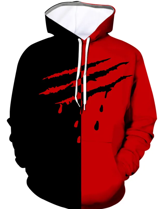 Men’s Graphic Hoodie Hoodies Sweatshirt Casual Long Sleeve Hooded Daily Going out Black Red Designer