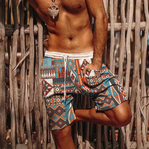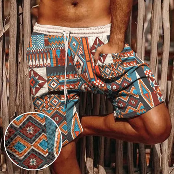 Men’s Graphic Prints Geometry Summer Shorts Beach Shorts Casual Shorts Mid Waist Streetwear Stylish Ethnic Style Daily Holiday Beach Drawstring Elastic Waist 3D Print Designer Clothing Apparel