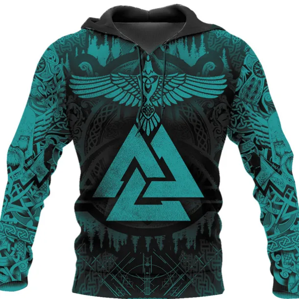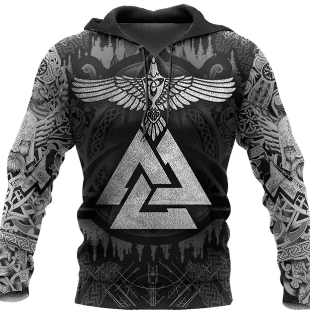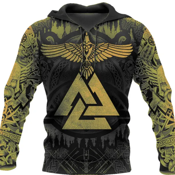 Men’s Graphic Prints Viking Hoodie Hoodies Sweatshirt Daily Classic Long Sleeve Hooded Holiday Going out Streetwear Black Yellow Print Spring & Fall Designer