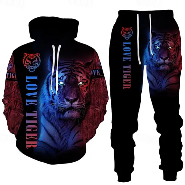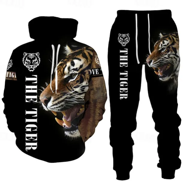 Men’s Graphic Tiger 2pcs 3D Sweatshirt Sets Tracksuit Hoodies Long Sleeve Long pants Hooded Streetwear Basic Casual Sports & Outdoor Casual Sports Print Spring Fall Yellow / Black Yellow & Black Black