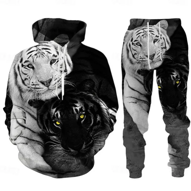 Men’s Graphic Tiger 2pcs 3D Sweatshirt Sets Tracksuit Hoodies Long Sleeve Long pants Hooded Streetwear Designer Basic Sports & Outdoor Casual Sports Print Spring Fall Black Blue Purple