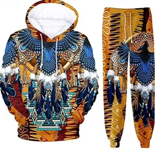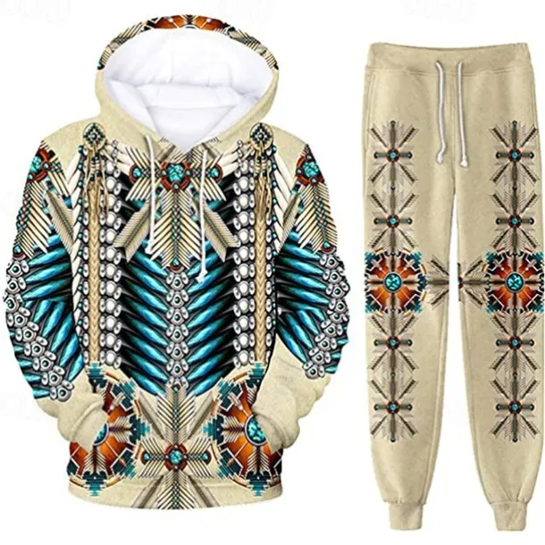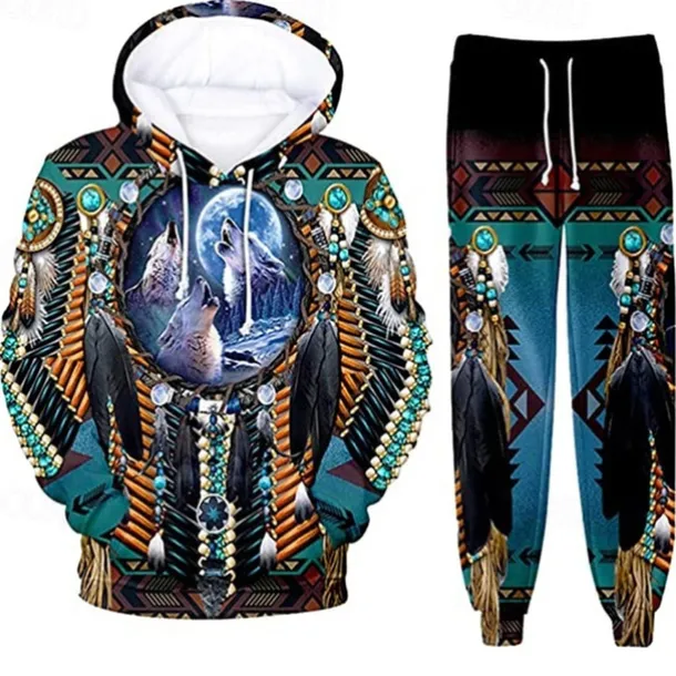 Men’s Graphic Wolf Bohemian Style 2pcs 3D Sweatshirt Sets Tracksuit Hoodies Long Sleeve Long pants Hooded Streetwear Designer Basic Sports & Outdoor Casual Sports Print Spring Fall Blue Orange Brown