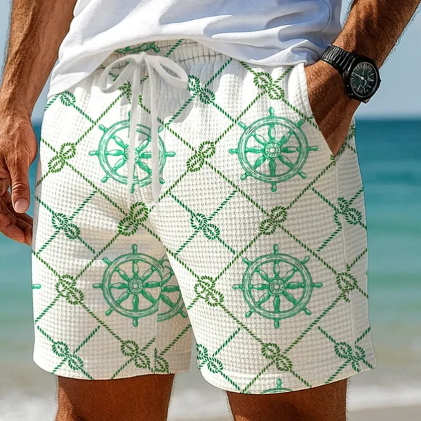 Men’s Grid / Plaid Compass Waffle Shorts Sweat Shorts Casual Shorts Mid Waist Fashion Casual Vacation Jogging Workout Elastic Drawstring Waist Shorts with Pockets Designer Clothing Apparel