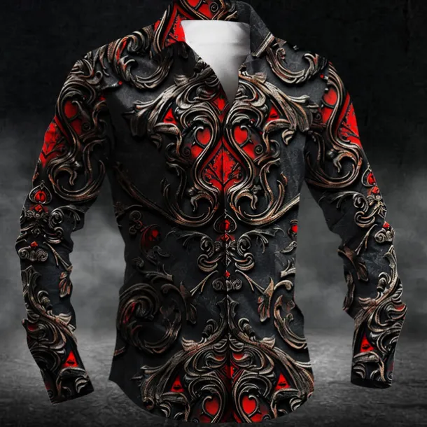 Men’s Halloween Costumes Day of the Dead Button Up Shirt Long Sleeve Dark Party Evening Wear Business Daily Fall Winter Spring & Summer Shirt Collar Button Up 3D Print Red Purple Orange Green Dark