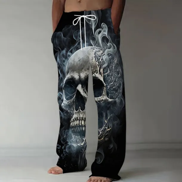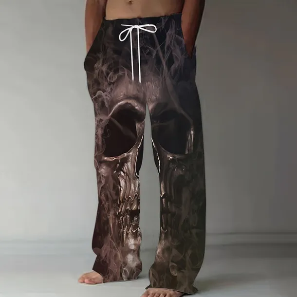 Men’s Halloween Costumes Skulls Trousers Baggy Pants Casual Pants Mid Waist Dark Gothic Style Holiday Streetwear Elastic Drawstring Waist Linen-Like Pants with Pockets Summer Spring 3D Print Black