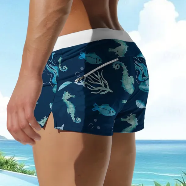 Men’s Hawaiian Sea Creatures Swim Shorts Board Shorts Swimming Trunks Mid Waist Fashion Designer Surfing Holiday Beach Pocket Drawstring Elastic Waist Designer Clothing Apparel
