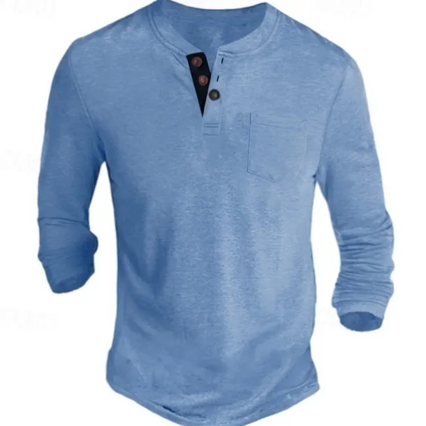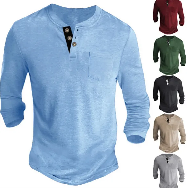 – Henley neckline adds a touch of sophistication and uniqueness to the garment.