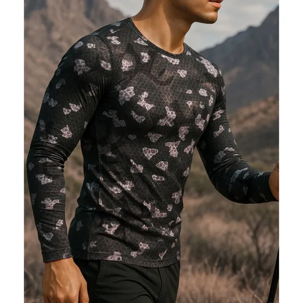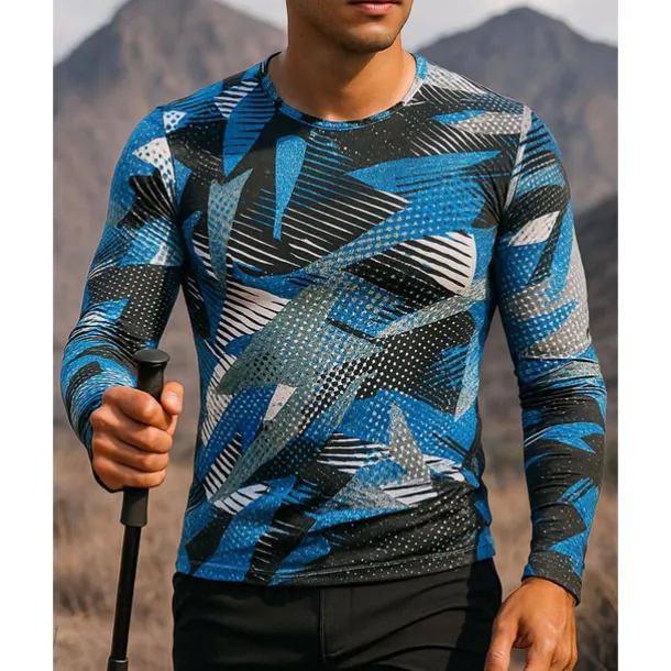 Men’s Hiking top Tee shirt Long Sleeve Crew Neck Tee Tshirt Top Outdoor Quick Dry Lightweight Elastic Breathable Pullover Polyester Camo Royal Blue Blue Grey Tennis Golf Running